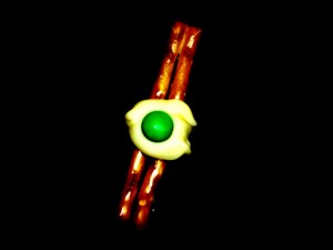 Simple yet delightful! Pour white melted chocolate over the center of two pretzel sticks laid together. Top with a mini yellow M&M.