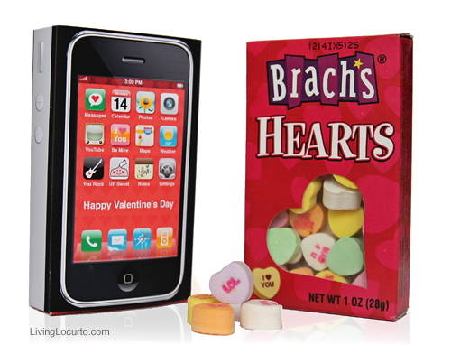 Then I found another brilliant way to create a Valentine iphone with a box of Conversation Hearts with Living Locurto’s free printable. Awe, I wish I was a kid again.