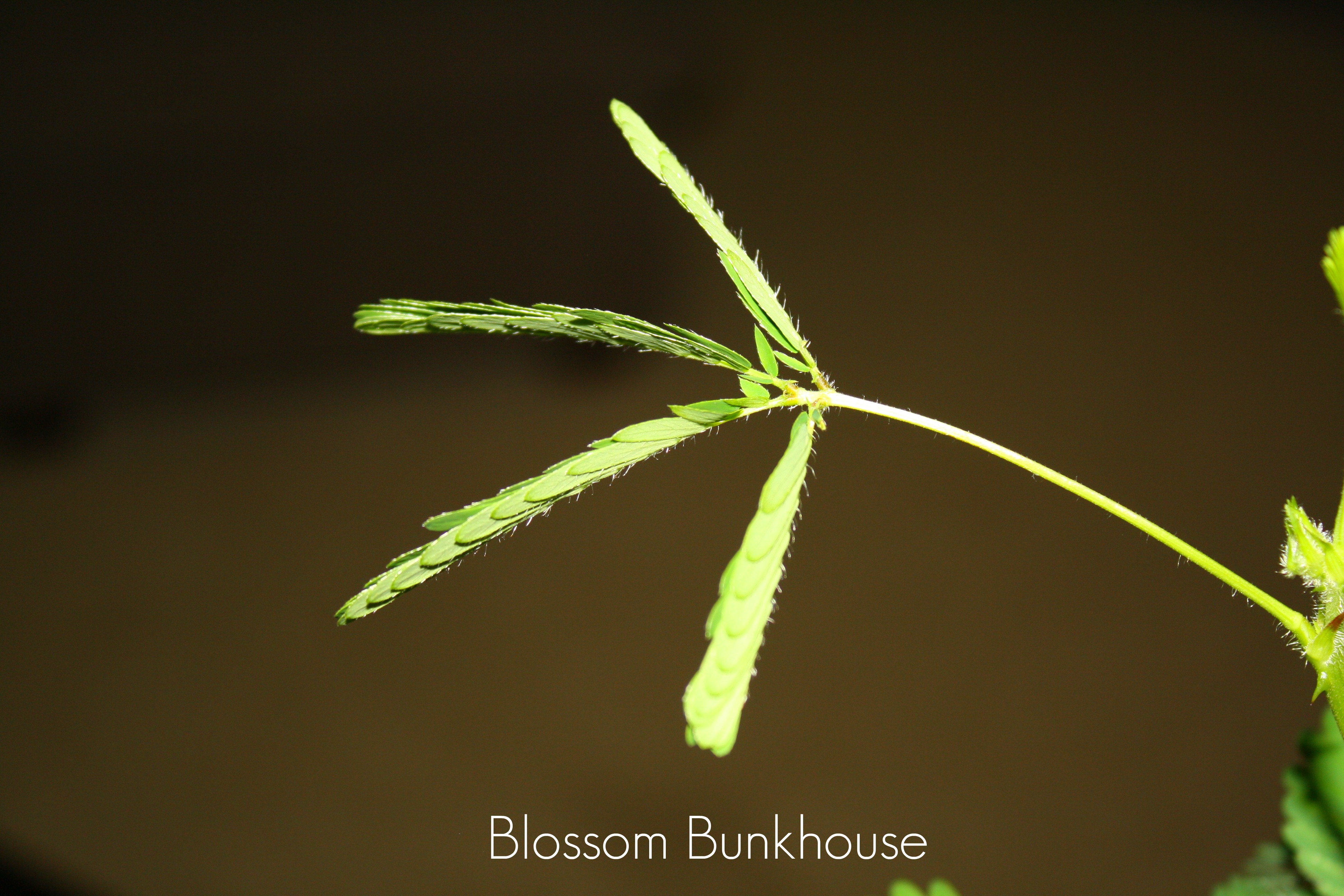 She walks over to a flat of indoor house plants and runs her hand over the top of them. Immediately the plants close up and shut down. Amused they were. The Sensitive Plant, formal name Mimosa Pudica Sensitive Plant, acts more like a pet than a plant! The leaves shut when they are touched and further more the stems lay down when touched a second time. Of course, it was a great selling tactic that she probably shows all parents and the sucker written across my forehead was flashing that day. The good news, it is still living; we have not killed it yet. It has been easy to care for and a source of conversation and entertainment!