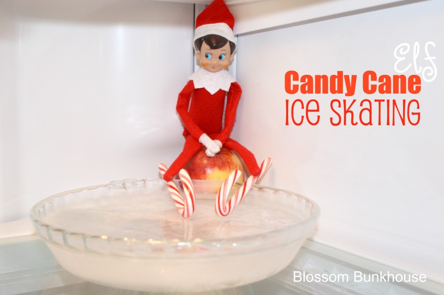 If you’re up for a little challenge, consider having your Elf Candy Cane Ice Skate on an ice filled pie dish. It takes a little prep time to freeze the water; however, getting his candy cane skates to stay in position is the challenge. I managed to get ours to work but if you are having difficulty then just set the candy cane skates on the surface in front of him instead of on the ice.